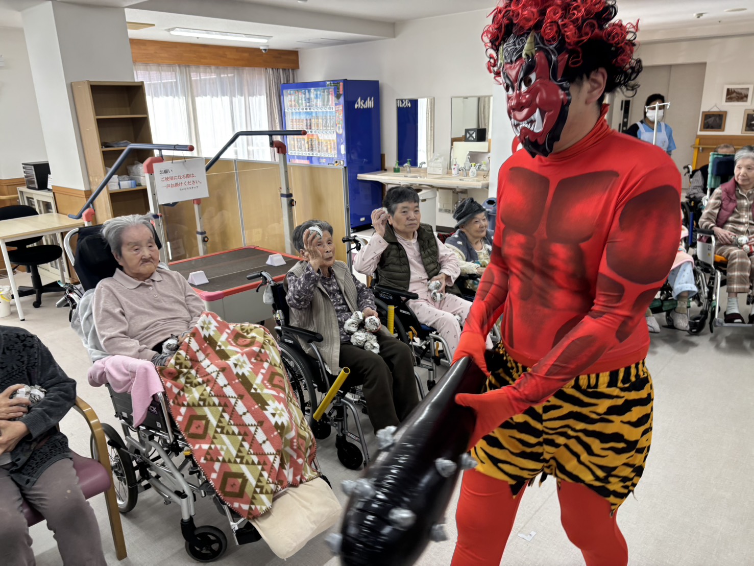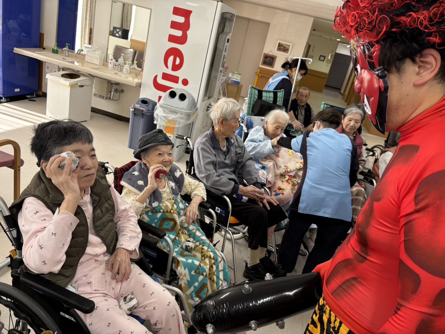 それ、豆(新聞紙)を投げて~
